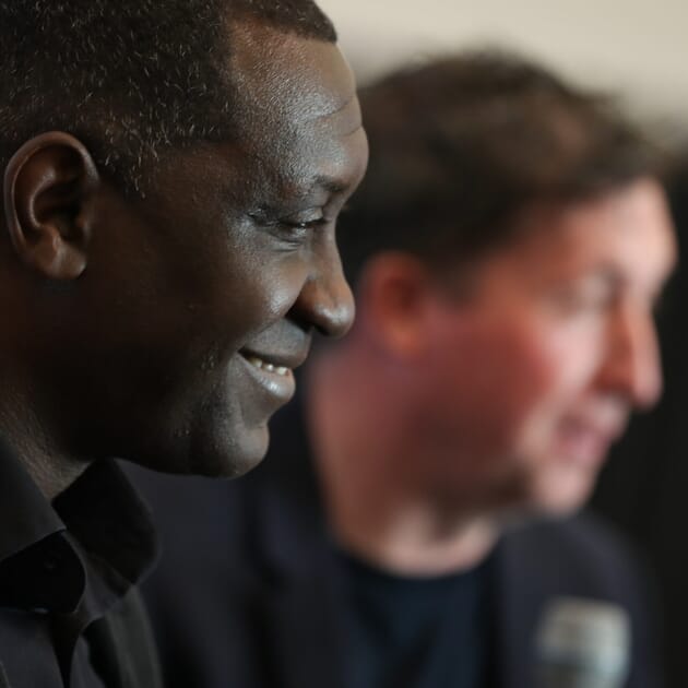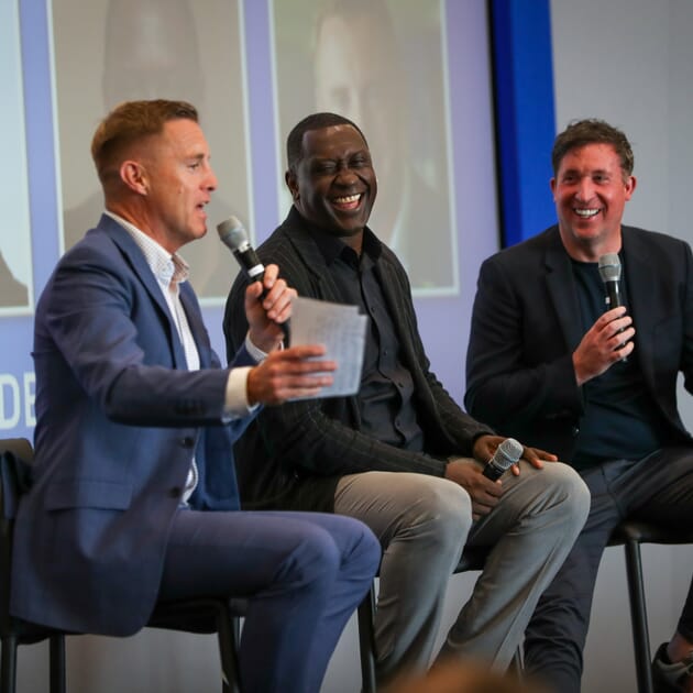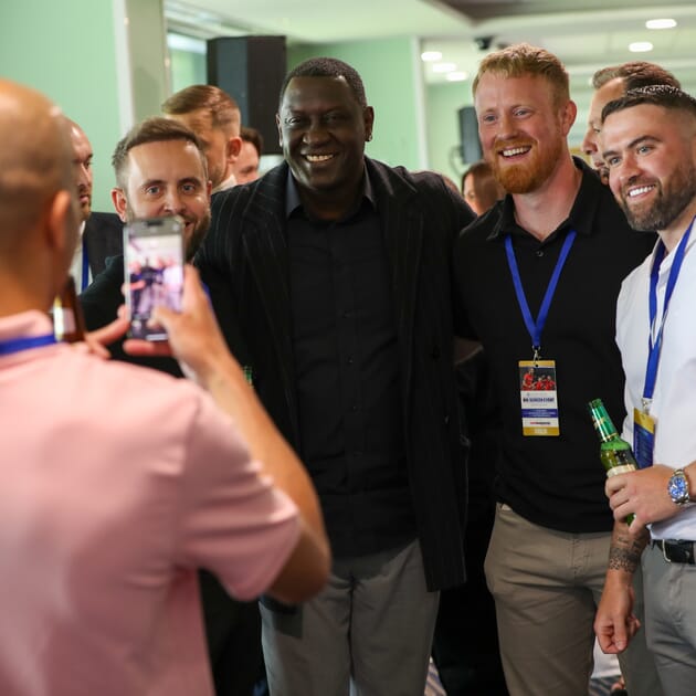 The stars joining us for the day were none other than former Liverpool and England striker Robbie Fowler and Leicester, Liverpool and England forward Emile Heskey. These top players boasting no less than 88 England caps between them, plus an incredible 1092 club games! Discussion began on their individual careers, with a range of fascinating and often hilarious stories lighting up the event and engaging the audience, the atmosphere in the room was buoyant throughout! Prolific Premier League scorer Robbie did mention that he would have liked to have achieved, and probably deserved, more England caps, and that he felt somewhat overlooked by the England managers of his time.