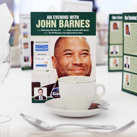 On a gorgeous early summer evening at Truro High School, we were joined by 150 guests in our luxury marquee for  ‘An Evening with John Barnes’. Early arriving guests soaked up the early evening sun with a drink out on the lawn in front of our facility, with our Gold ticket holders going through for a private drinks reception and a photo with the Liverpool and England legend.
