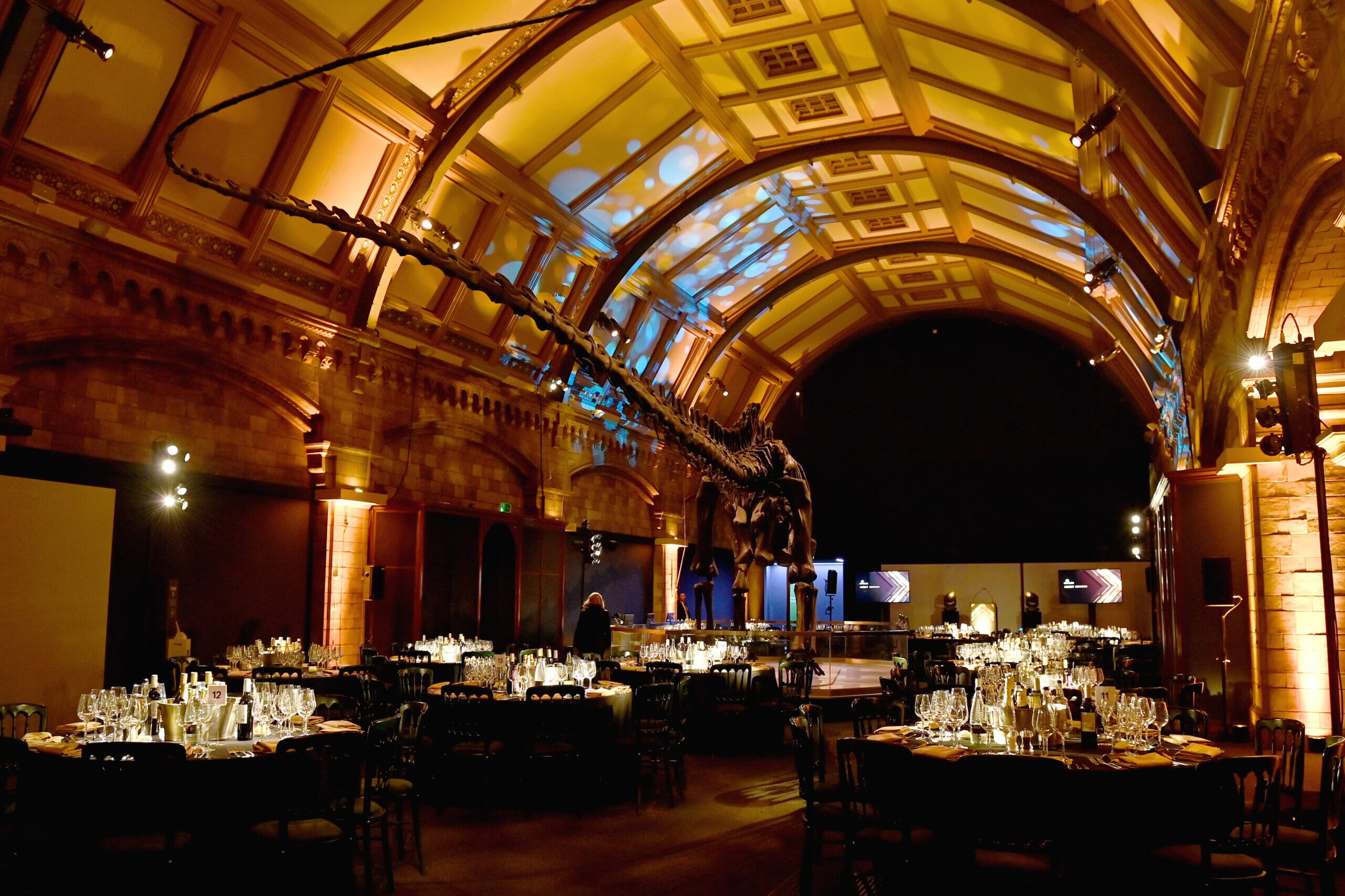View 34 photosEarth Hall at the Natural History Museum played host to a stunning client event, an awards dinner to celebrate the successes of the team, and enjoy an evening of ultimate luxury. The iconic space is home to the dinosaur collection, with some of the finest specimens anywhere in the world poised in all their splendour around the hall, including the world famous diplodocus, Dippy! With the room enhanced by a magical lighting set-up, guests settled down to an evening of fine dining, a comprehensive in room bar and the chance to dance the night away in this unique setting.