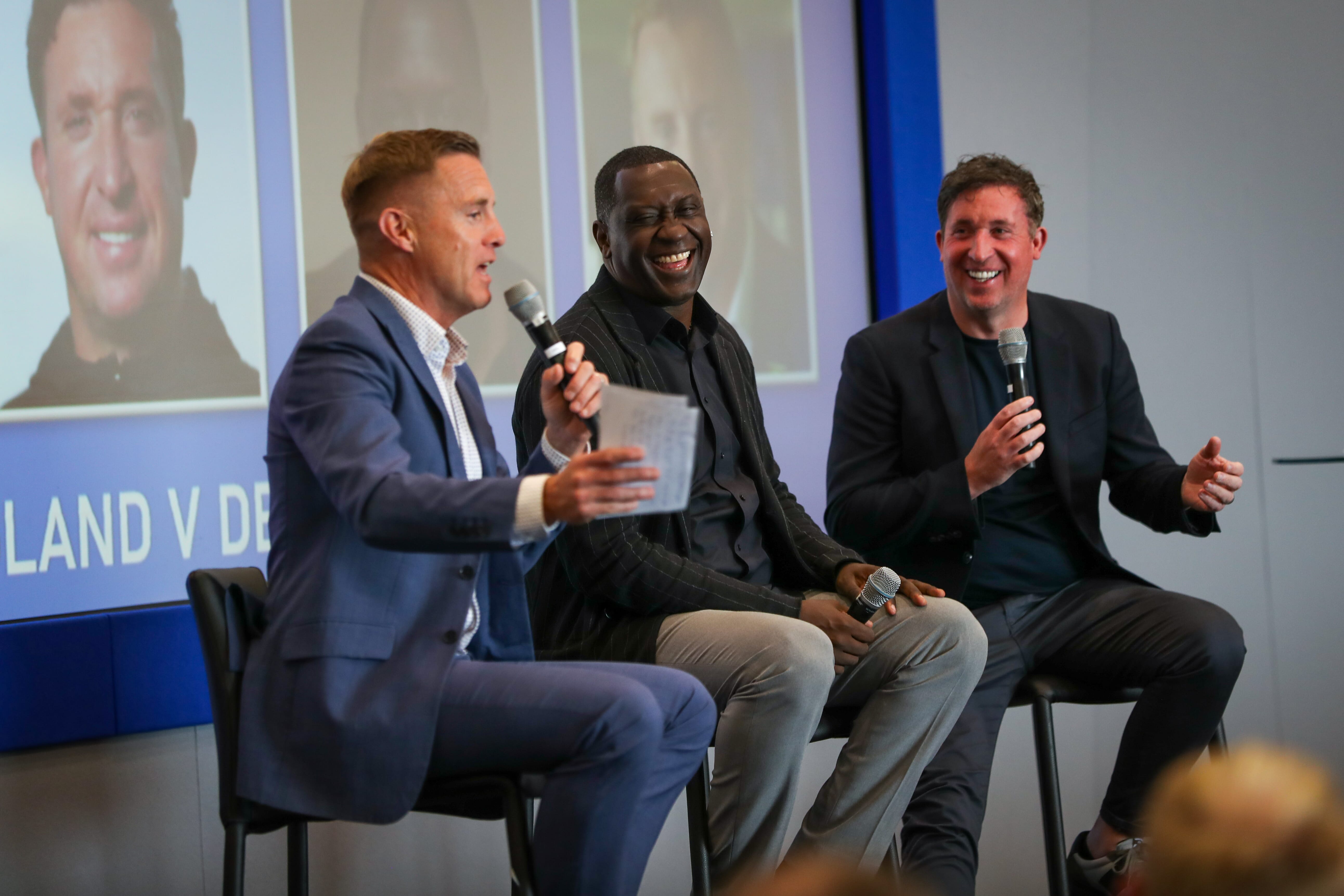 The stars joining us for the day were none other than former Liverpool and England striker Robbie Fowler and Leicester, Liverpool and England forward Emile Heskey. These top players boasting no less than 88 England caps between them, plus an incredible 1092 club games! Discussion began on their individual careers, with a range of fascinating and often hilarious stories lighting up the event and engaging the audience, the atmosphere in the room was buoyant throughout! Prolific Premier League scorer Robbie did mention that he would have liked to have achieved, and probably deserved, more England caps, and that he felt somewhat overlooked by the England managers of his time.