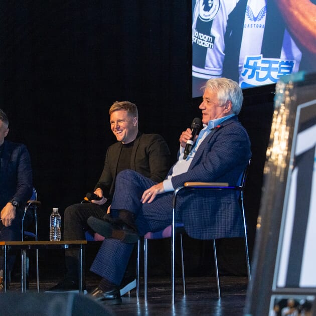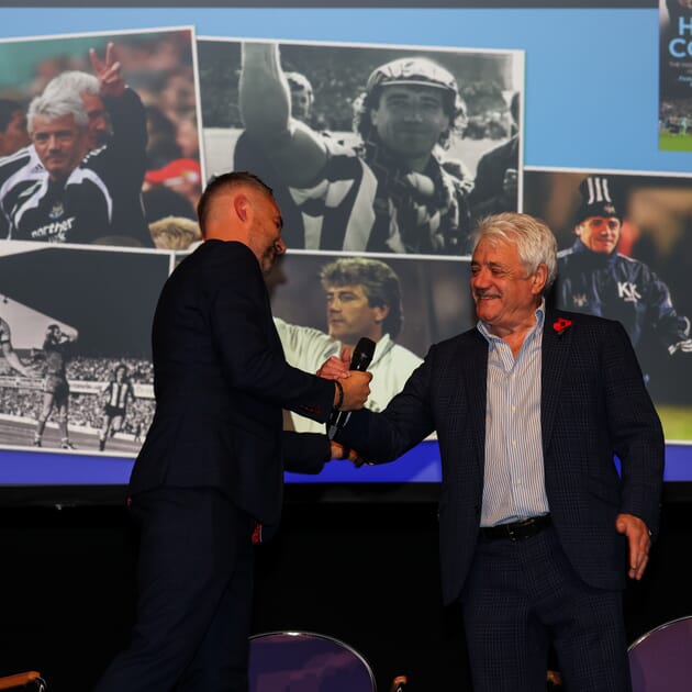 Kevin was first to take to the stage for his Q&A with Pete at his book launch event, where they looked back over his career with the Magpies from playing and retiring, to coming back as manager and taking them to the Champions League. At the end of his Q&A Kevin was joined by another legend Terry McDermott for a rendition of the Geordie folk classic and Newcastle United anthem Blaydon Races which was a real moment to remember. Then after a short break for the Live Auction, Kevin was welcomed back to the stage and, in another historic moment which was welcomed with raucous applause, he was joined by Eddie Howe. After a warm embrace they sat down and discussed Eddie’s time as manager so far, some of his superb signings and that sensational night at St. James’ Park against PSG.