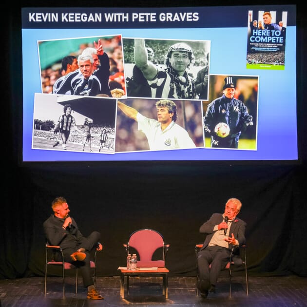 With two incredible guests on the bill for this book launch event, hosted by the author himself Pete Graves, the excitement was palpable at the near sell-out at the Tyne Theatre & Opera House in Newcastle. The guests in question were top Newcastle legends in fan favourite and club saviour Kevin Keegan who would be joined by man of the moment, current manager Eddie Howe who has taken the club back to where it belongs recreating the improvements and scaling the heights reached previously under ‘King Kev’!