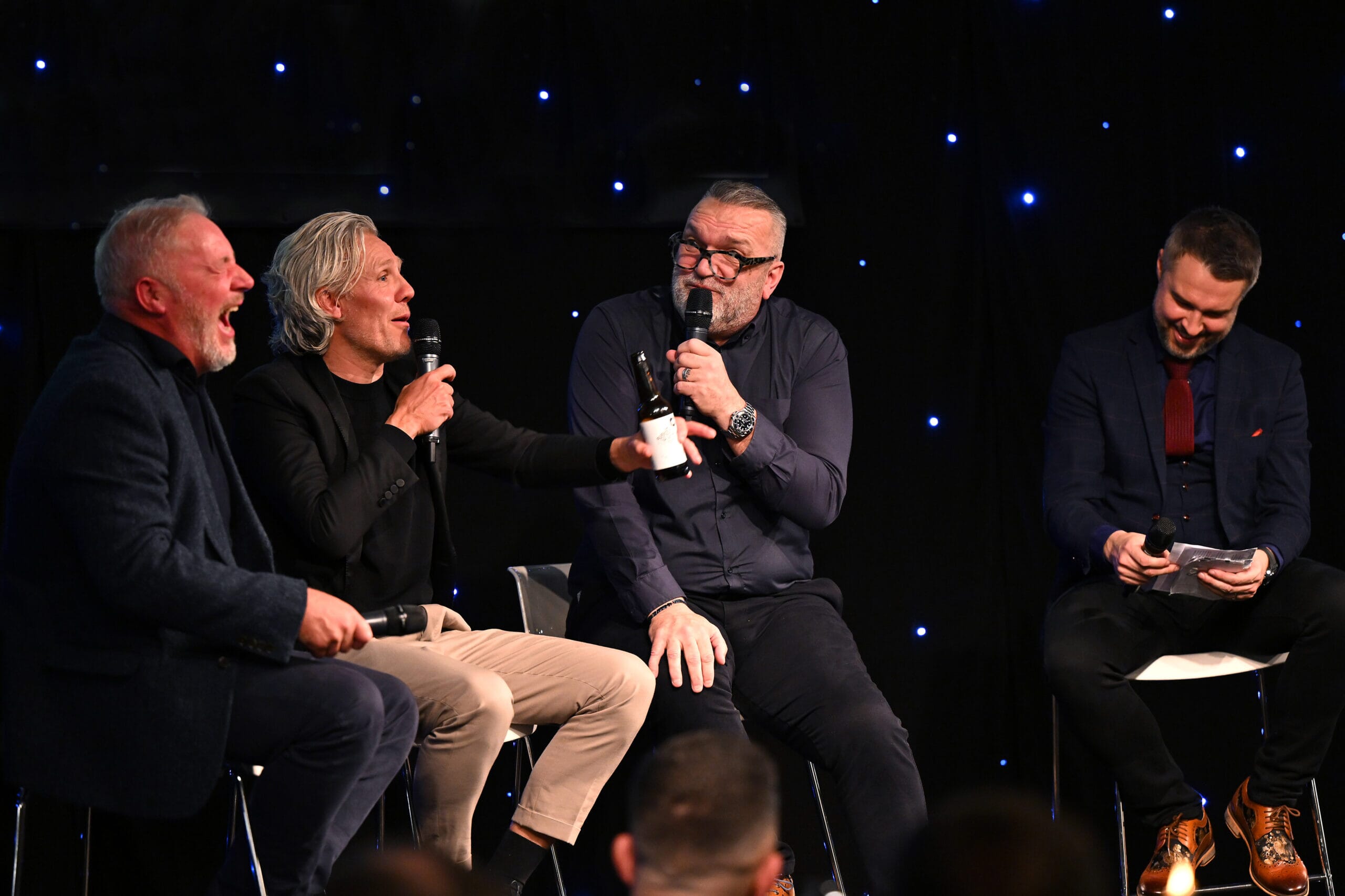 Ally McCoist shared entertaining stories from his time at Rangers, including a funny incident during a high-pressure Old Firm derby that lightened the tension in the dressing room. Jimmy Bullard, known for his lively personality, had the room in stitches with anecdotes from his Premier League days, particularly one about a post-match prank on a teammate that backfired spectacularly. ‘Razor’ Ruddock didn’t disappoint either, recalling his notorious run-in with Patrick Vieira during a heated Liverpool vs. Arsenal clash, as well as his legendary banter with teammates, leaving the audience roaring with laughter.
