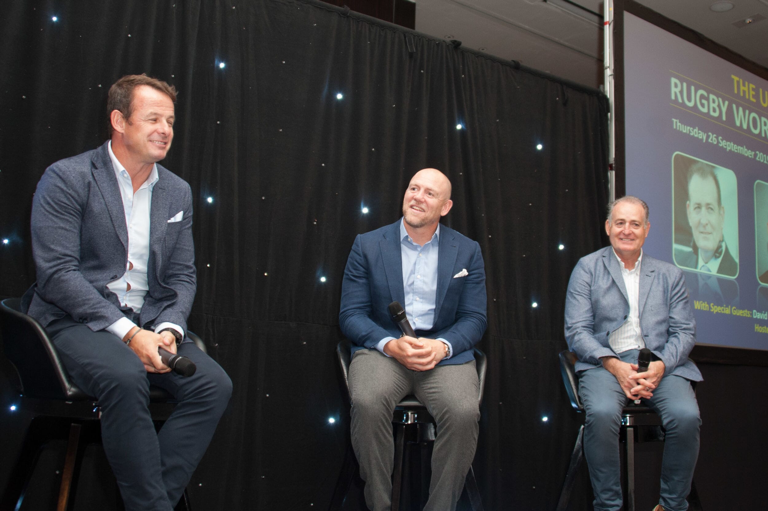 We were delighted to be joined for the day by three big names: World cup winner and England’s most-capped centre Mike Tindall was joined by all-time great Aussie winger David Campese and the shy and retiring former England utility back Austin Healey. With these three great characters as guests there was a real buzz in the air as the guys made there way to the stage for pre-match analysis.